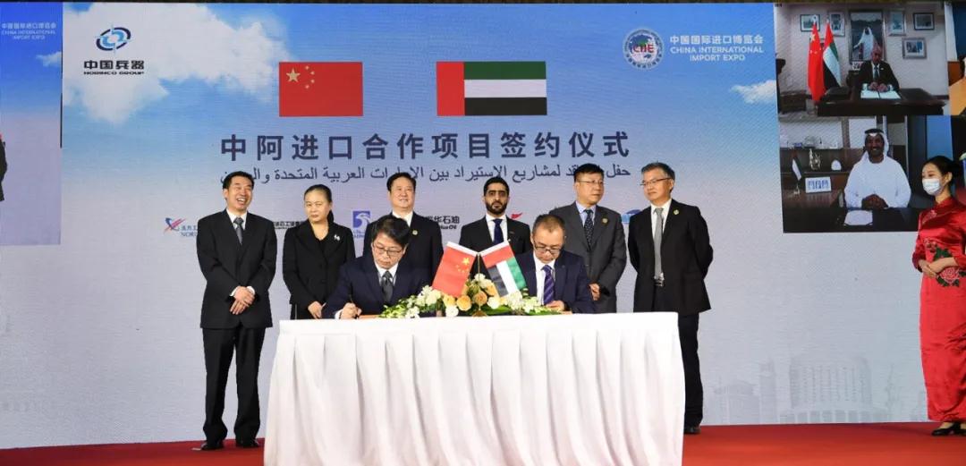 11月4日下午,阿拉伯聯合酋長國&中國兵器工業集團進口合作項目專場簽約儀式在上海舉行。