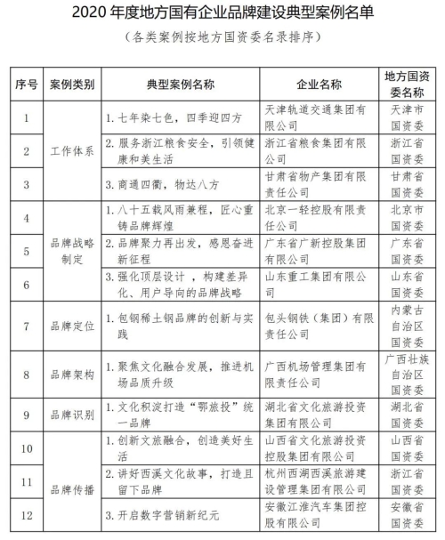 2020年度100個國有企業品牌建設典型案例和100個優秀品牌故事,匯集企業優秀經驗做法,豐富國企品牌資源池,促進企業相互學習借鑒,加快提高品牌管理專業化水平。