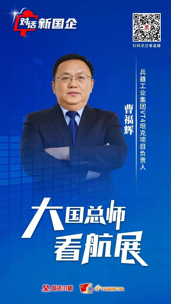 11月8日,國務院國資委新聞中心聯合共青團中央宣傳部共同推出“對話新國企·大國總師看航展”系列訪談節目。中國兵器工業集團一機集團副總經理、VT-4坦克項目負責人曹福輝作為訪談嘉賓,接受視頻連線采訪,介紹了兵器工業集團有關參展情況,并就VT-4坦克的最新研發成果和地面作戰裝備體系解決方案等進行了介紹。