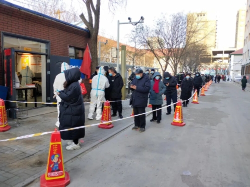 來自一機集團、北重集團、材料院52所包頭事業部的共計500余名志愿者密切配合包頭市防疫部門、街道社區進行全員核酸檢測,同時做好信息登記、維護秩序、宣傳政策等工作,確保核酸檢測全覆蓋。2月20日凌晨,在零下20度的寒風中,志愿者全部在支援地集結到位,做好核酸檢測前的相關準備。