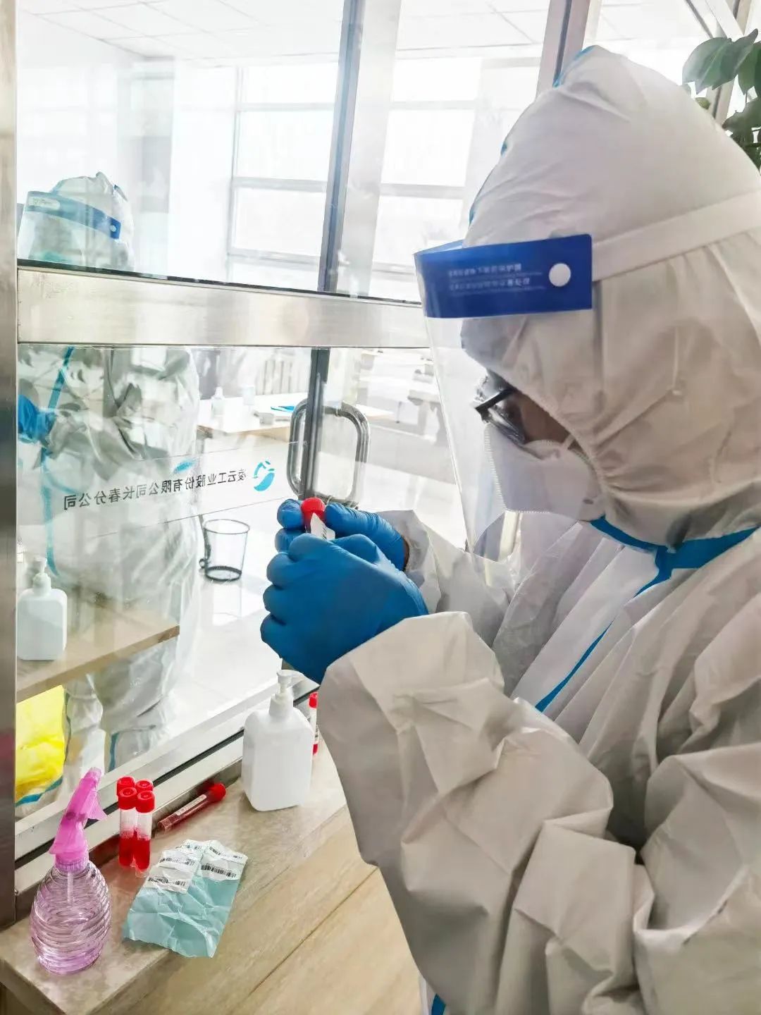 到達檢測點后,采樣隊隊員們穿好“戰袍”,第一時間投入工作。多輪的大規模人群核酸采樣,無數次的采集、消毒、再采集、再消毒……同樣的動作,他們要重復數百次甚至上千次,腿站麻了就跺跺腳,腰直不起來了就伸伸腰,他們從不喊苦叫累,用堅定的行動詮釋醫者擔當,守護一方百姓健康。戰“疫”至今,晉機醫院共抽調40人次前往小店區核酸采樣一線,累計采樣14250人次,與此同時,隊員們還分散至各小區,進行上門核酸采樣工作。