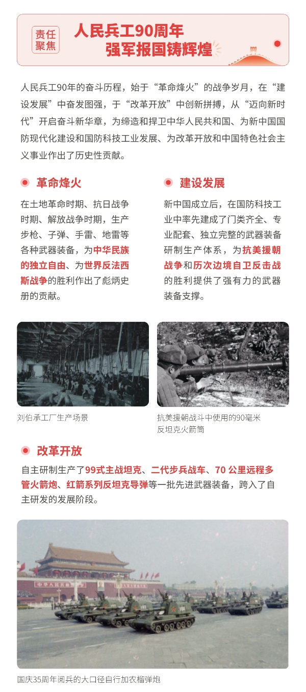 近日,兵器工業(yè)集團正式發(fā)布第十三份年度社會責(zé)任報告——《中國兵器工業(yè)集團有限公司2021年社會責(zé)任報告》,以“用心守護和平、用力爭創(chuàng)一流、用情溫暖社會”為主題,從恪守強軍首責(zé)、服務(wù)經(jīng)濟建設(shè)、共創(chuàng)美好生活三個維度,向社會全面披露2021年度履責(zé)實踐和履責(zé)業(yè)績。《報告》連續(xù)第三年獲得中國企業(yè)社會責(zé)任報告評級專家委員會“五星佳”評級,兵器工業(yè)集團成為軍工行業(yè)唯一連續(xù)11年獲得五星及五星佳最高評級的企業(yè)。 一圖解碼兵器工業(yè)的“責(zé)任力量” |