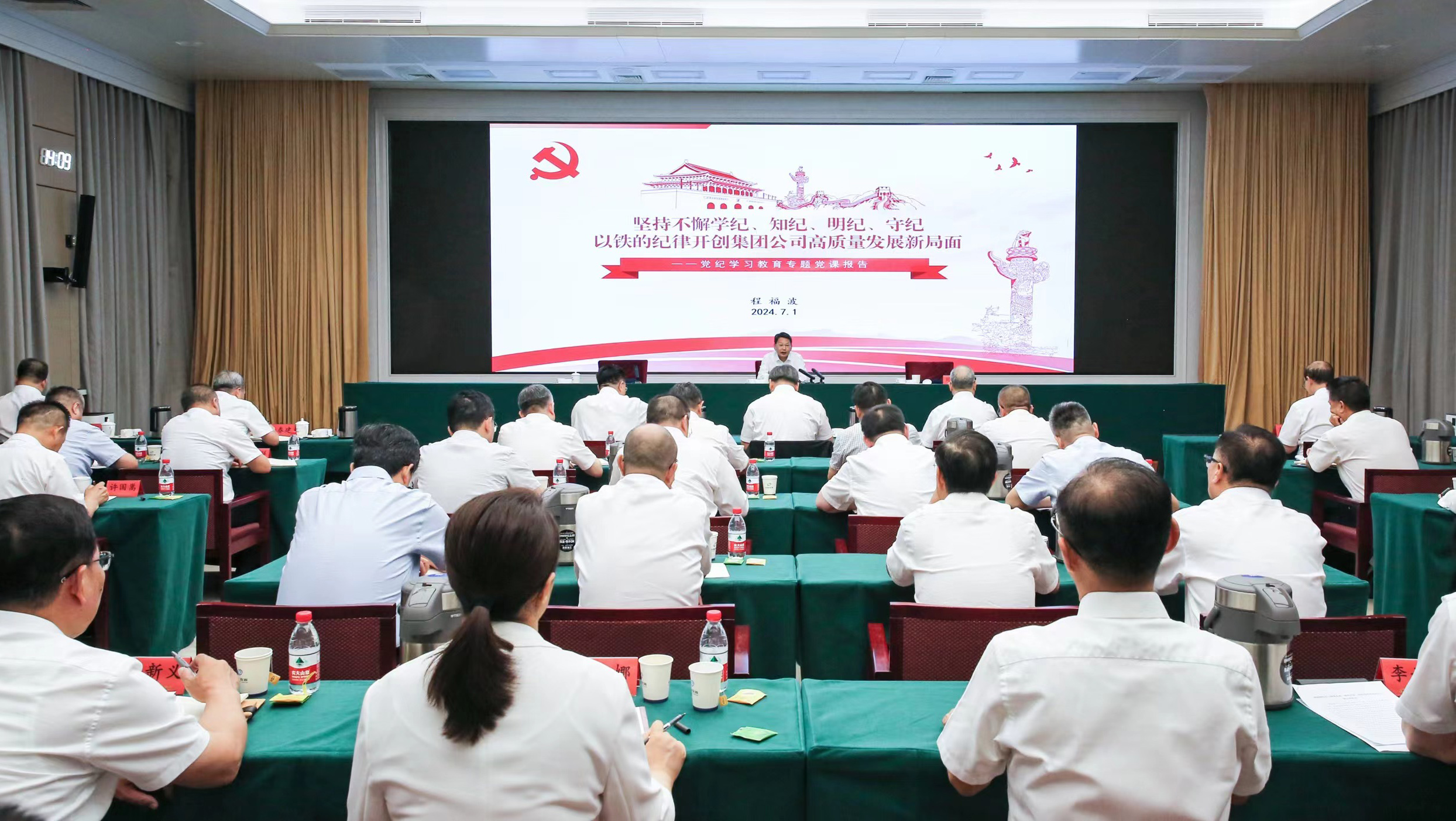專題黨課以視頻方式舉辦,集團公司黨組同志,集團公司總經理助理級同志,系列責任總師,總部各部門專務及以上人員,各子集團和直管單位及所屬業務板塊領導班子成員,組織人事、黨群、巡察、紀檢等部門負責人以及工會、團委負責人,集團公司紀檢監察工作特約監督員參會。